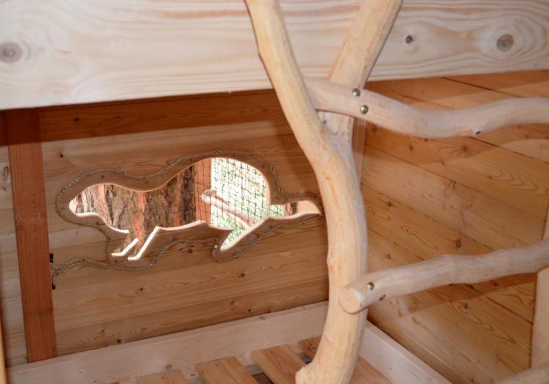 Treehouse pro 4 osoby s dětskou lanovou dráhou.